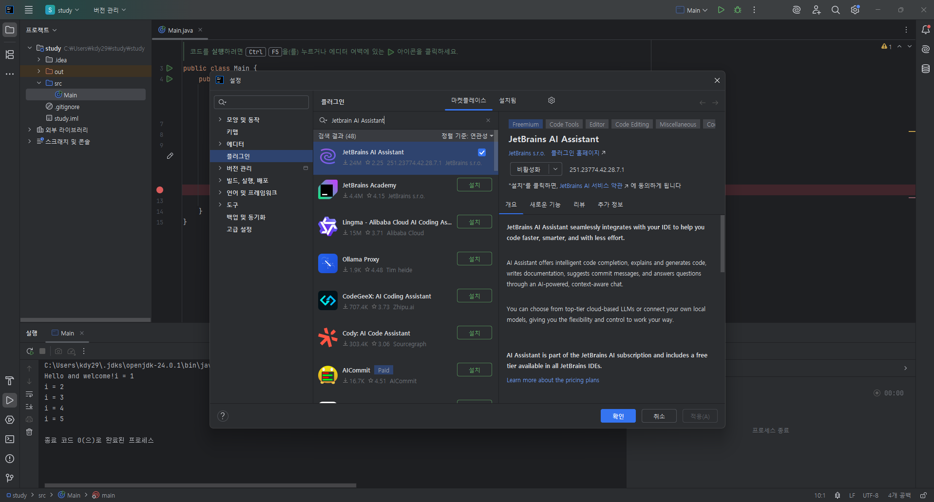 [IntelliJ] JetBrains AI Assistant 설치 본문