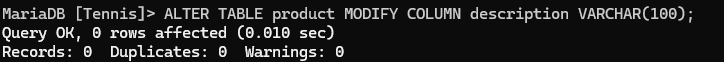 ALTER TABLE product MODIFY COLUMN description VARCHAR(100);