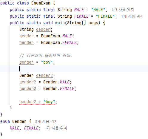 특정 값만 불러서 사용해야 할 때는 정해진 값으로 타입처럼 enum을 만들어서 사용할 수 있음
