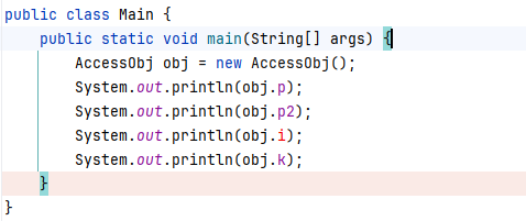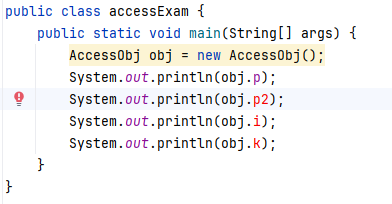 - 다른 패키지에서는 public을 제외하고는 사용할 수 없는 것을 확인 할 수 있음.
