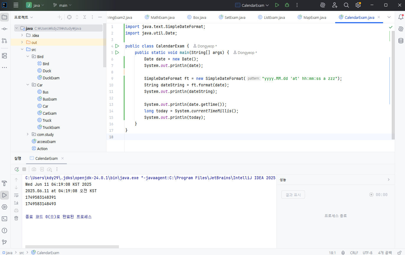 - SimpleDateFormat을 이용해서 Date가 출력하는 문자열 형태 변경