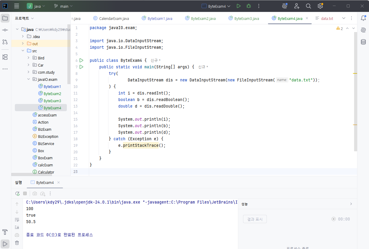 [JAVA] 자바 IO ( Byte 단위, 다양한 타입, Char 단위 입출력) 본문