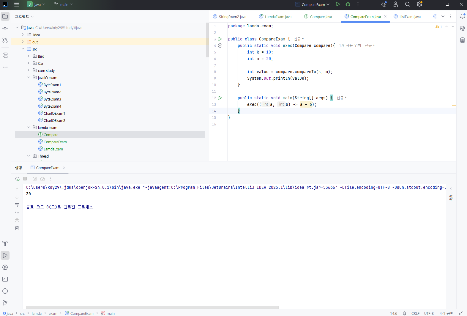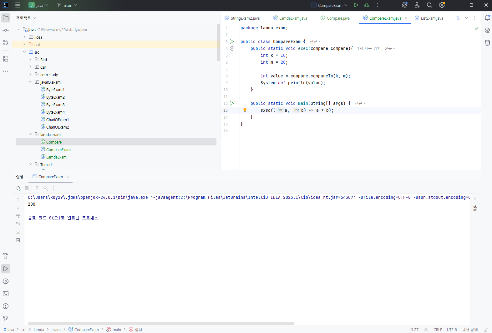 - 람다식으로 구현하는 메소드 구현 방식에 따라 출력되는 결과물이 달라짐
