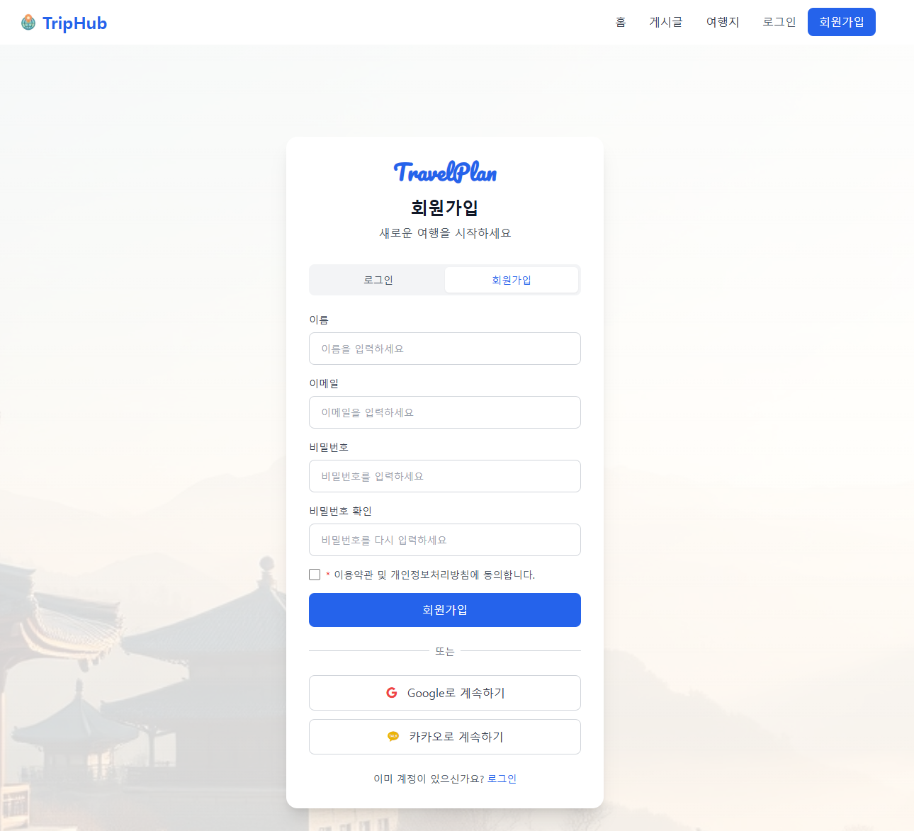 이런 문제의식에서 출발하여, 팀 프로젝트로 TripHub를 기획하게 되었습니다.