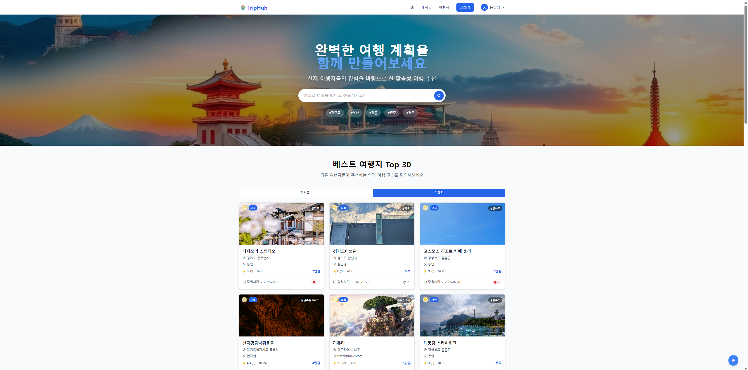 ✈️ TripHub - 여행 계획 추천 플랫폼 (1등 수상 프로젝트) 본문