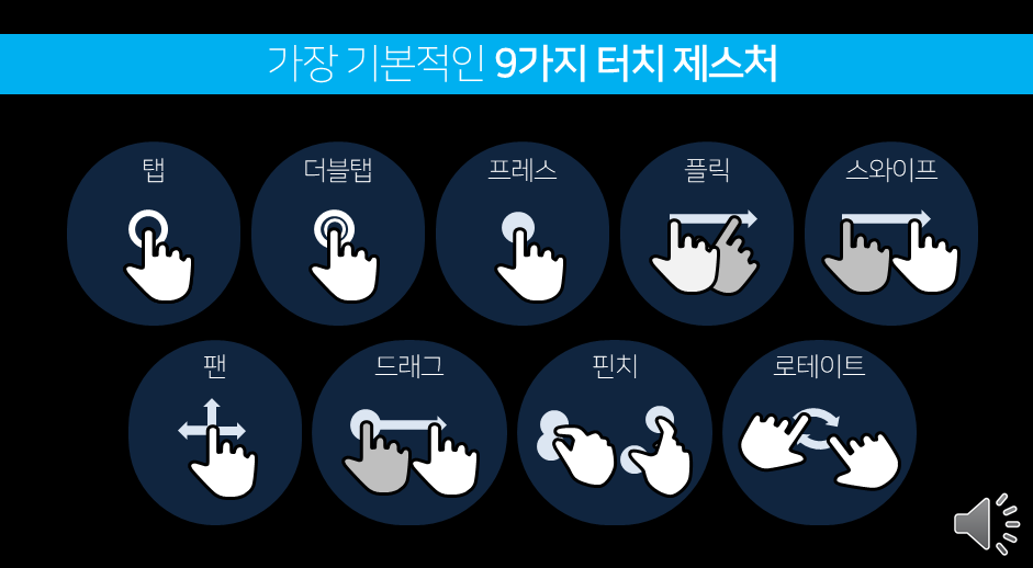 가장 기본적인 9가지 모바일 터치 제스처 (탭, 더블탭, 프레스, 플릭, 스와이프, 팬, 드래그, 핀치, 로테이...
