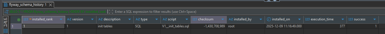 - flyway_schema_history 테이블 확인
