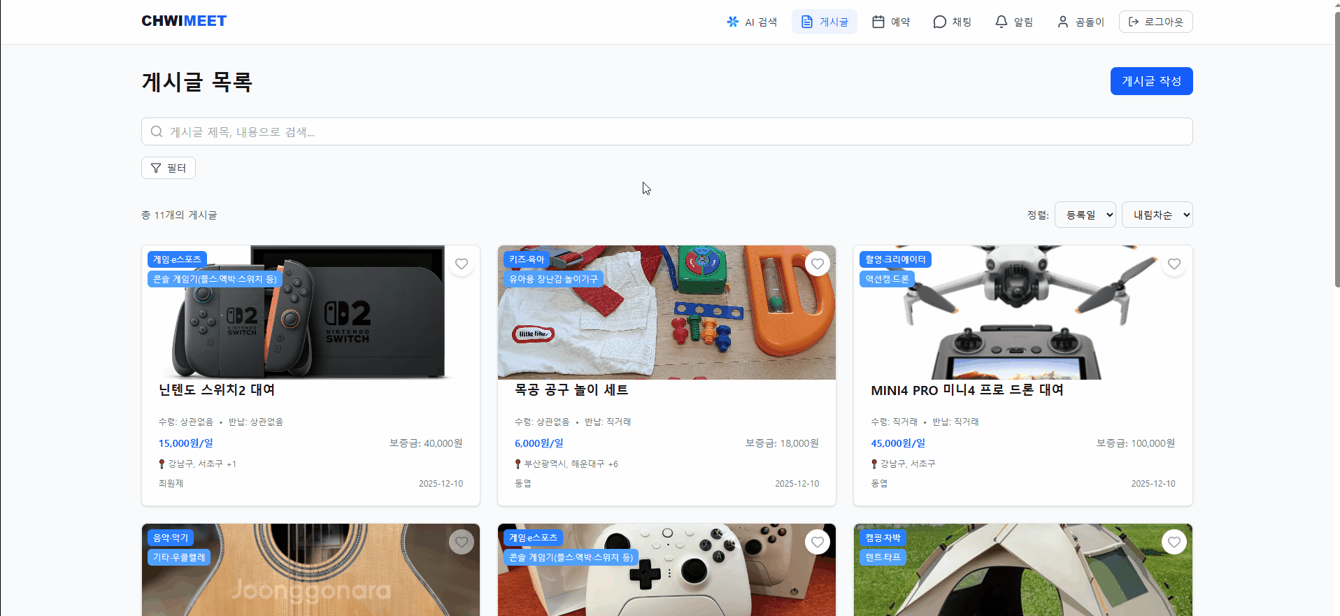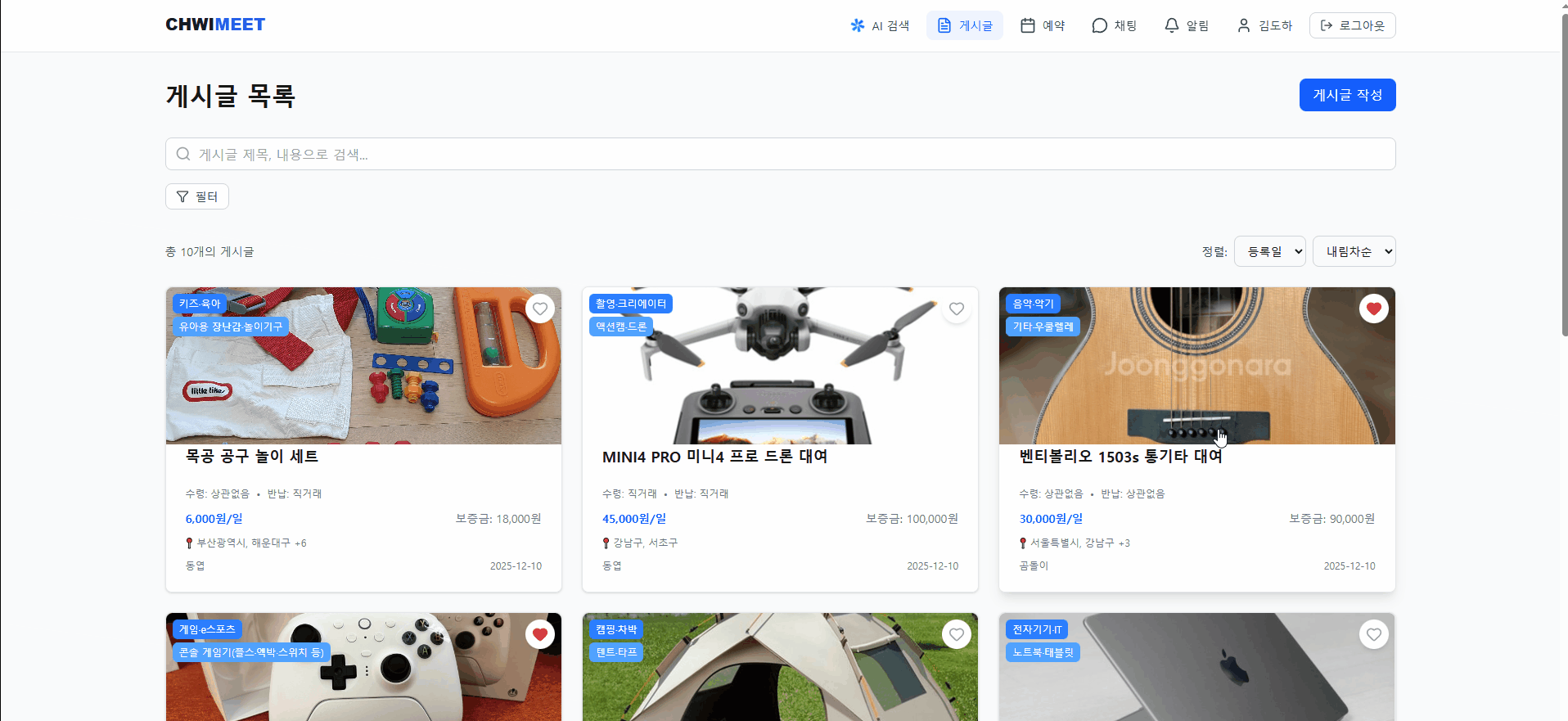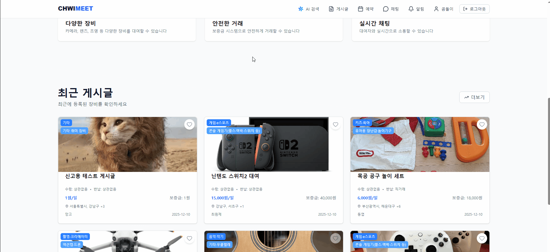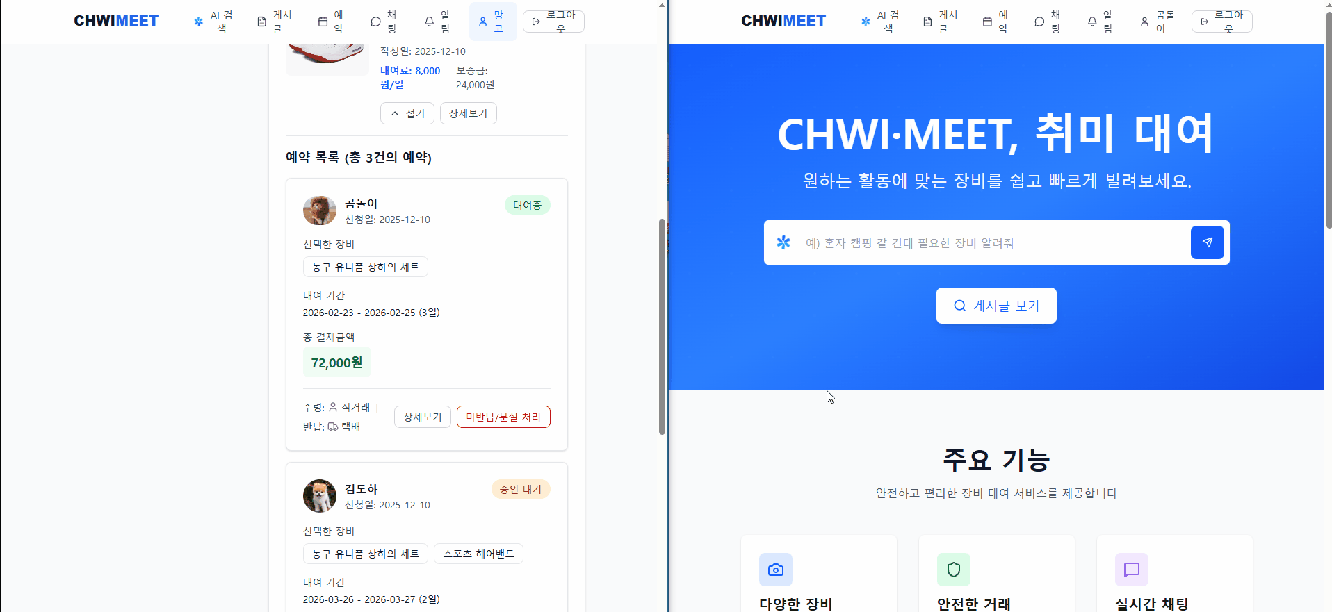 🧳 CHWI·MEET(취밋) – 취미 장비 대여 플랫폼 (1등 수상 프로젝트) 본문