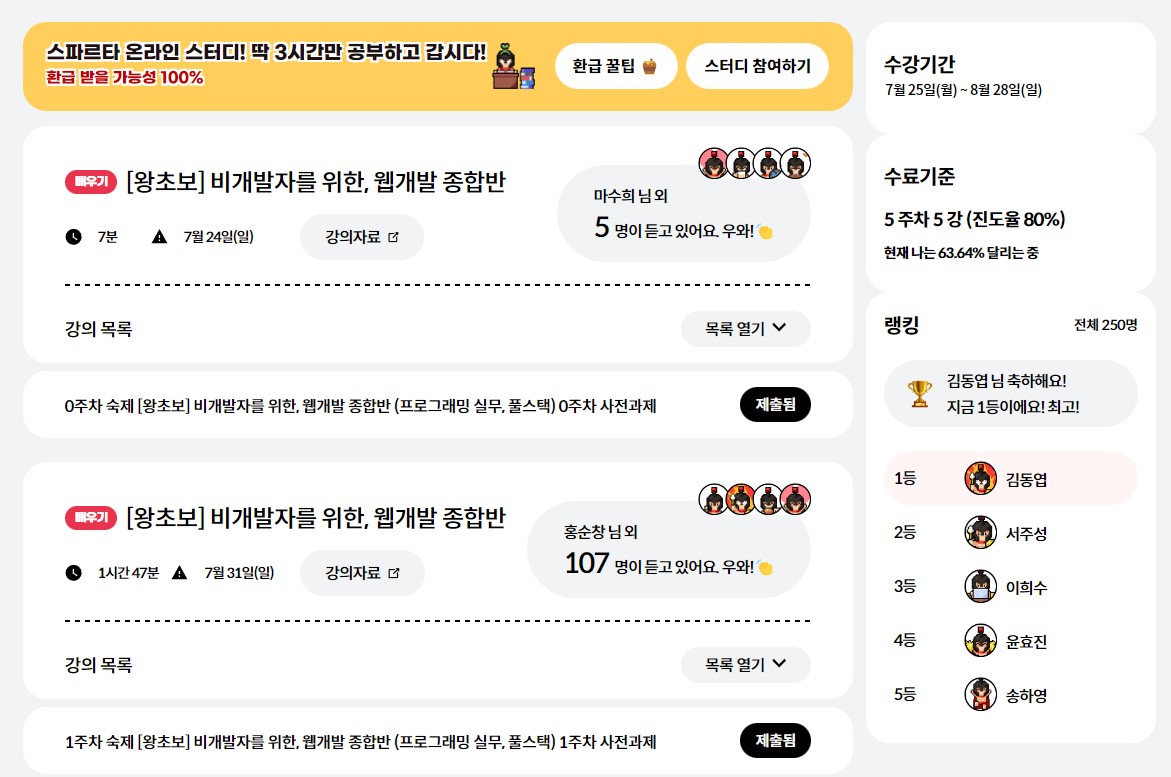 7월23일 웹개발 종합반 강의 5주치를 3일만에 끝냈다. 난 천재인듯?(ㅈㅅ)