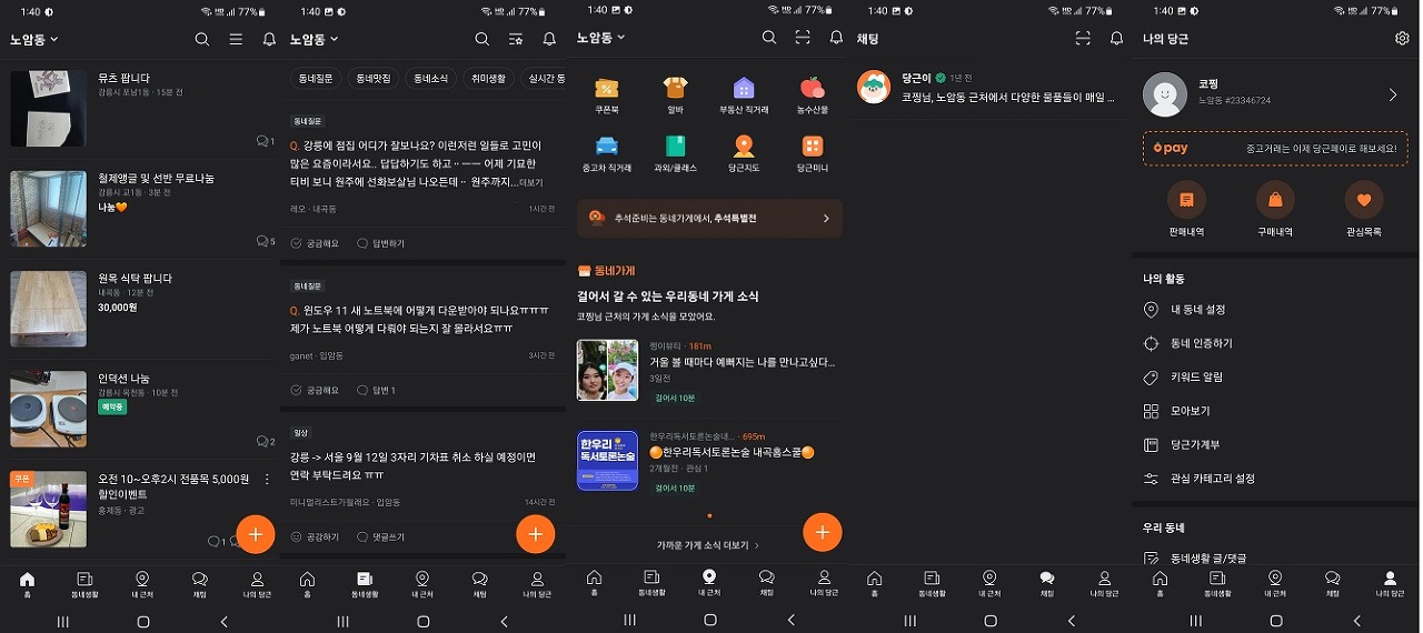 - 메인기능인 마켓 거래를 위한 홈, 상세보기, 거래신청, 채팅