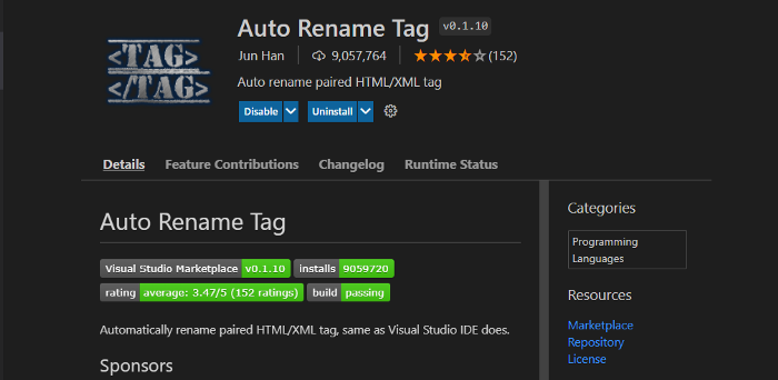 Auto Rename Tag - Visual Studio Marketplace