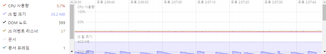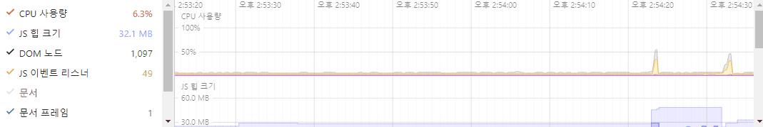 - 동시에 시작했음에도 tick함수가 더 늦게 동작을 시작함단일 개체 CPU사용량 비교
