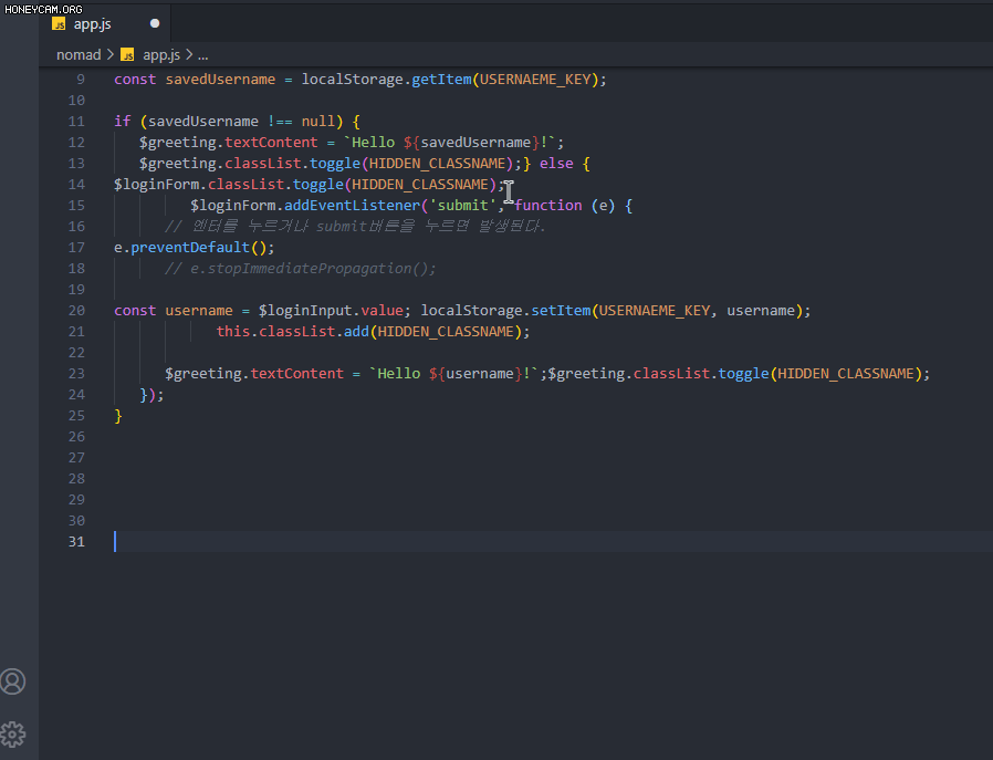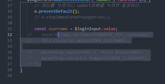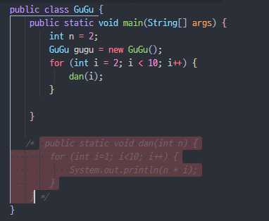주석으로 묶을 코드 부분을 드래그하고 단축키를 누르면 주석 처리 된다.
