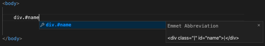 : 태그.클래스 입력 후, Enter 혹은 Tab ( .클래스 만 입력 시, div가 기본태그로 설정됨)