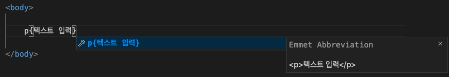 : 태그{입력하고 싶은 텍스트} 입력 후, Enter 혹은 Tab