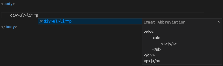 ex ) div > ul > li*3 + p