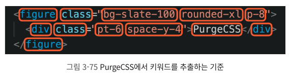 - PurgeCSS는 파일에 들어 있는 모든 키워드를 추출하여 해당 키워드를 이름으로 갖는 CSS 클래스만 보존