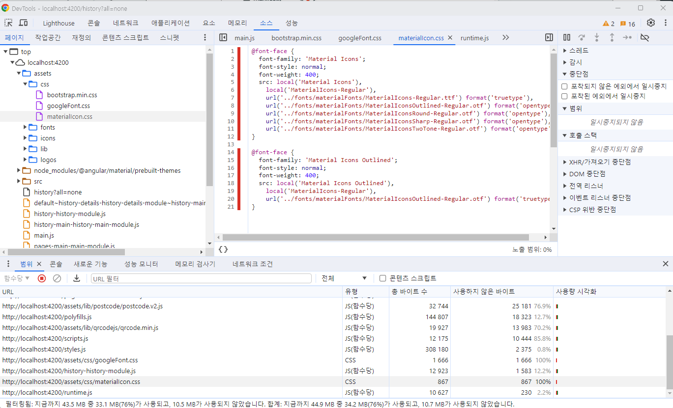 - 웹 페이지가 로드 될 때, 실행되는 모든 작업을 확인