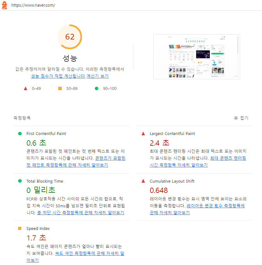 참고 자료: https://pagespeed.web.dev/?hl=ko