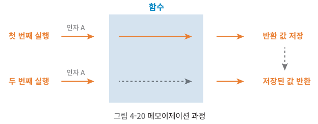 - 메모이제이션의 값을 저장하여 재활용하기 때문에 두 번째 실행부터 성능이 대폭 향샹된다는 장점,